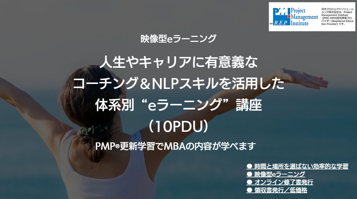 【A】人生やキャリアに有意義な コーチング&NLPスキルを活用した 体系別“eラーニング”講座(10PDU)