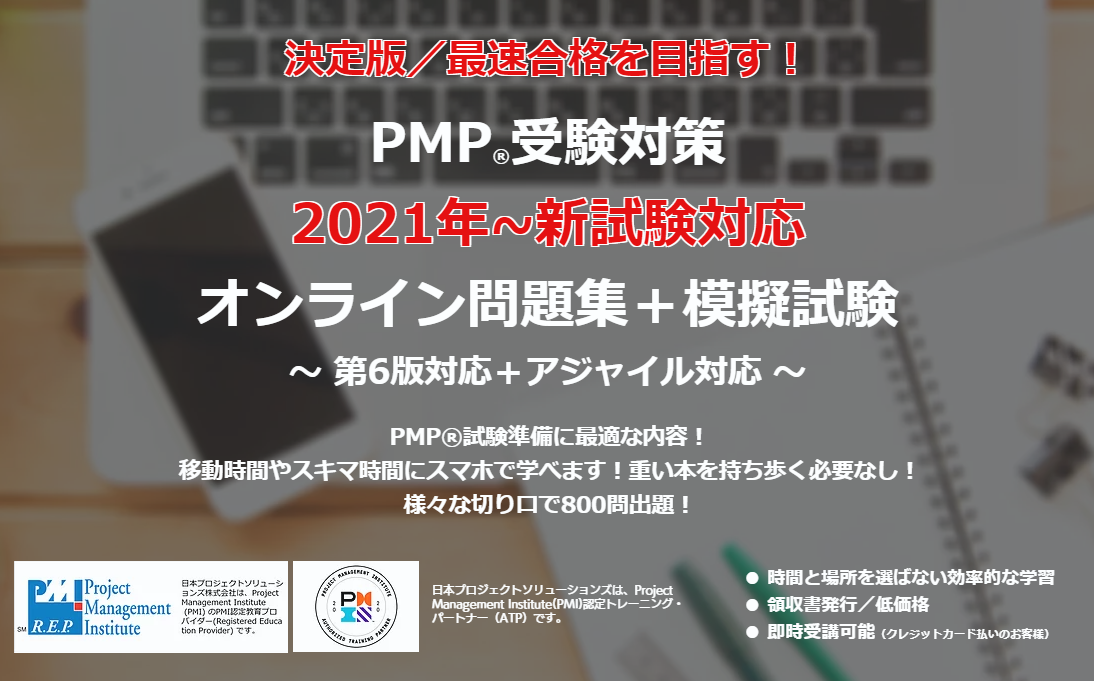 ●本コンテンツは「チューター」制度などが無い「セルフラーニング」のコンテンツになります。問題や解答内容、PMP®試験などに関するご質問は受け付けておりませんので、あらかじめご理解いただきますようお願い申し上げます。