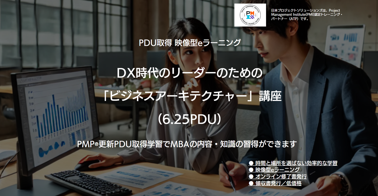 本eラーニングは講義修了時に、PMP(R)、PgMP(R)の皆様に合計6.25PDUs(Ways of Working:2.75PDUs/Power Skills:0.50PDUs/Business Acumen:3.00PDUs)を発行いたします。