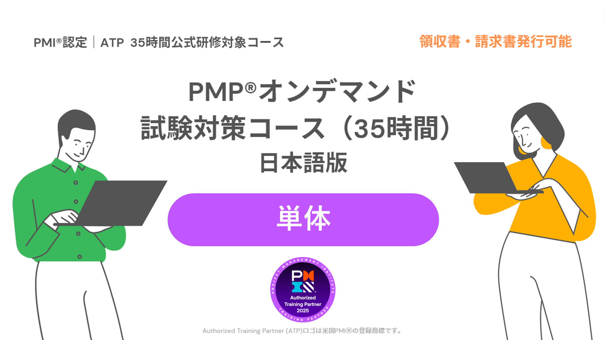 こちらは、PMPオンデマンド試験対策コース(35時間)単体と、PMPバンドル割引キャンペーン(PMI本会員入会金・初年度年会費・PMP受験料のセット)付きのカートです。詳細はこちらをご参照ください。