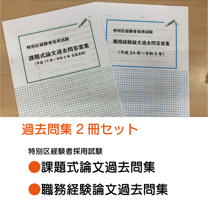 「課題式論文過去問集」(平成19年~令和5年まで)&「職務経験論文過去問集」(平成24年~令和5年まで)の2冊セット。