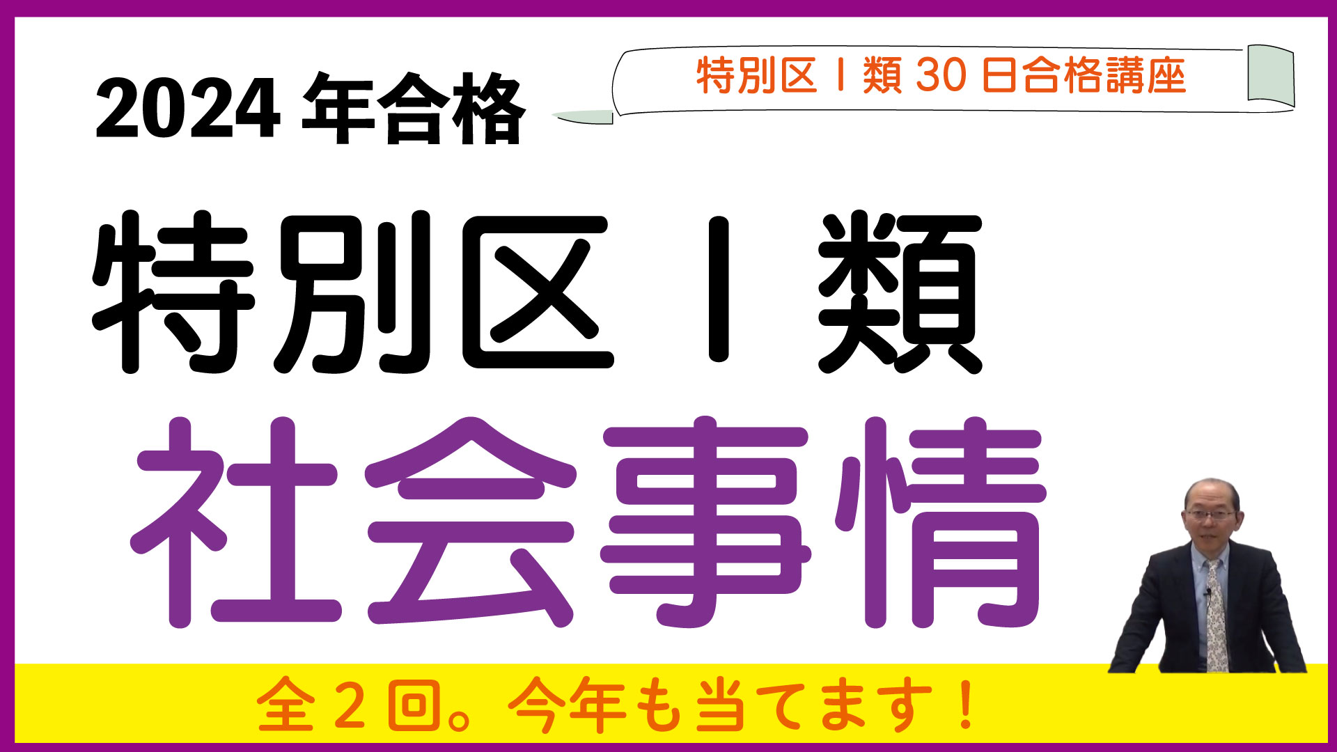 2024年合格 特別区Ⅰ類30日フルコースに含まれている「社会事情」の単科受講です。(全2回・約100分間)