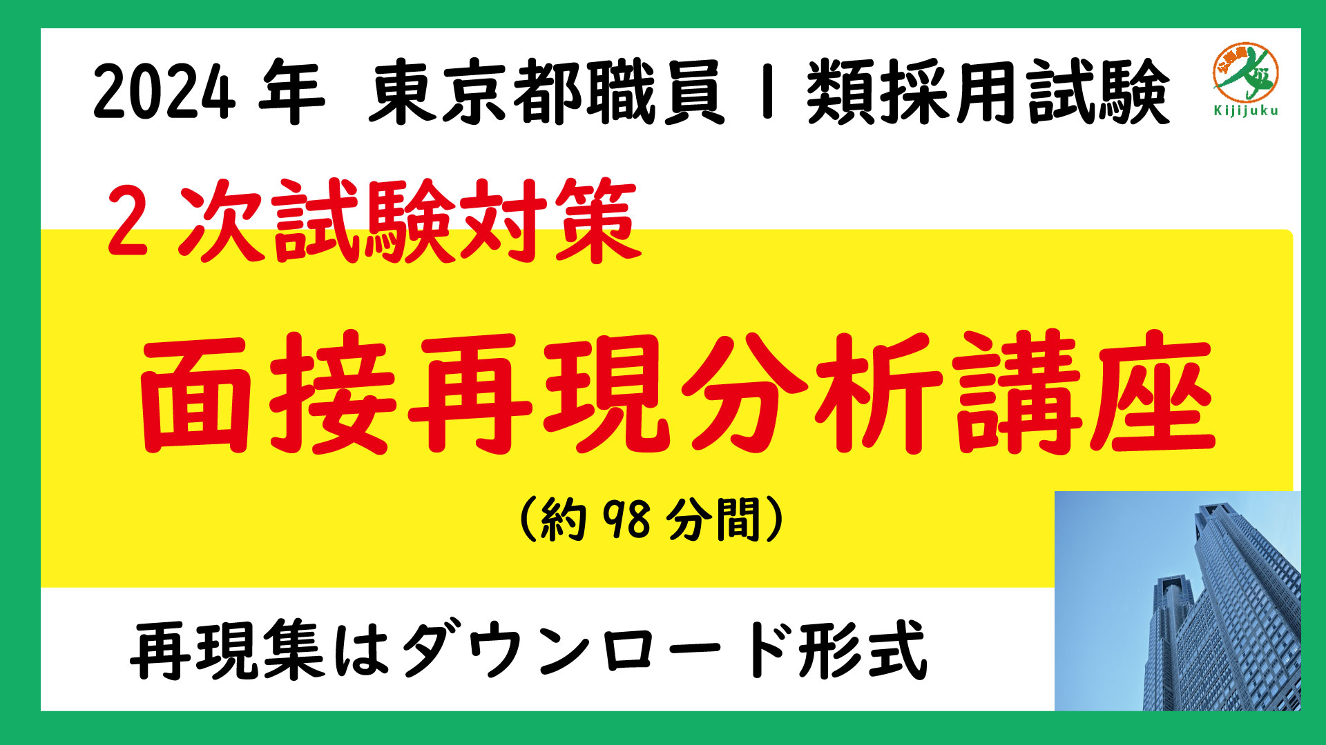 2024年合格 東京都職員採用Ⅰ類ABの面接対策「面接再現分析講座」(約98分間)です。