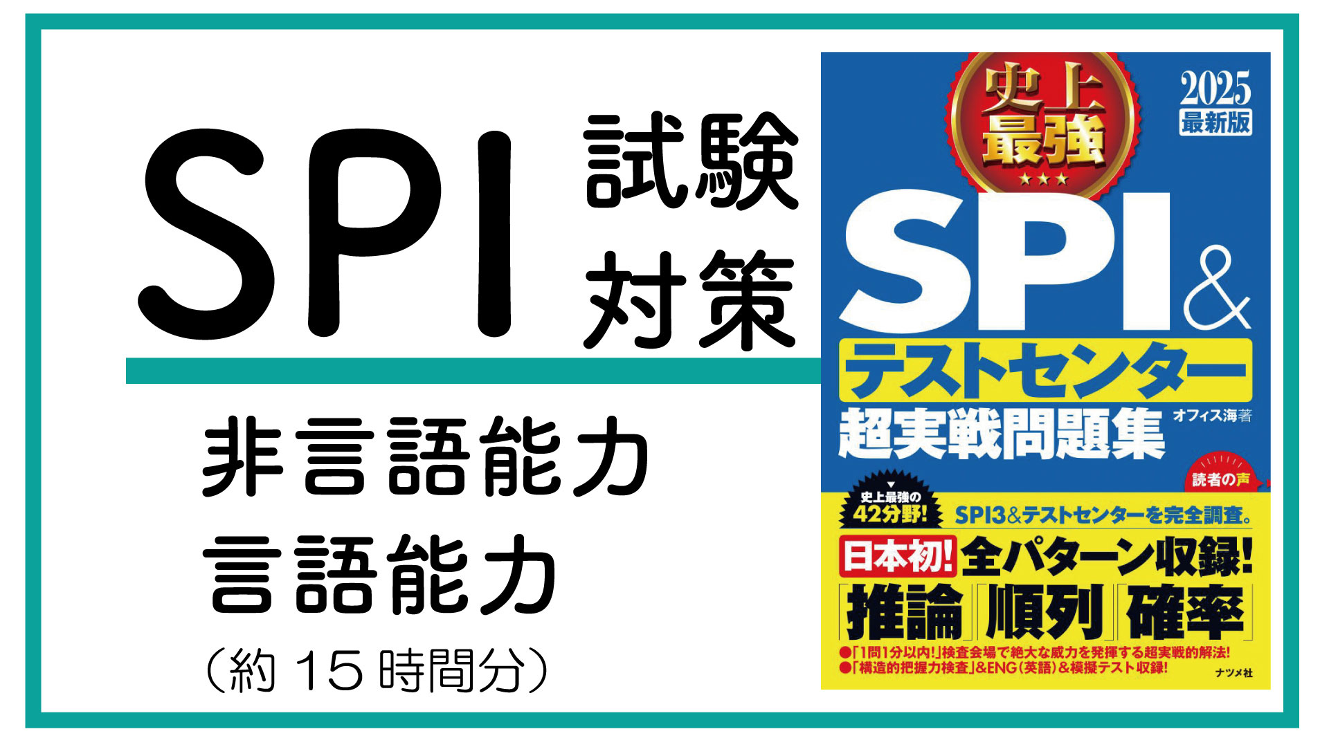 近年増えているSPI試験対策(非言語能力&言語能力)です。非言語能力13.5時間分、言語能力約1.5時間分です。