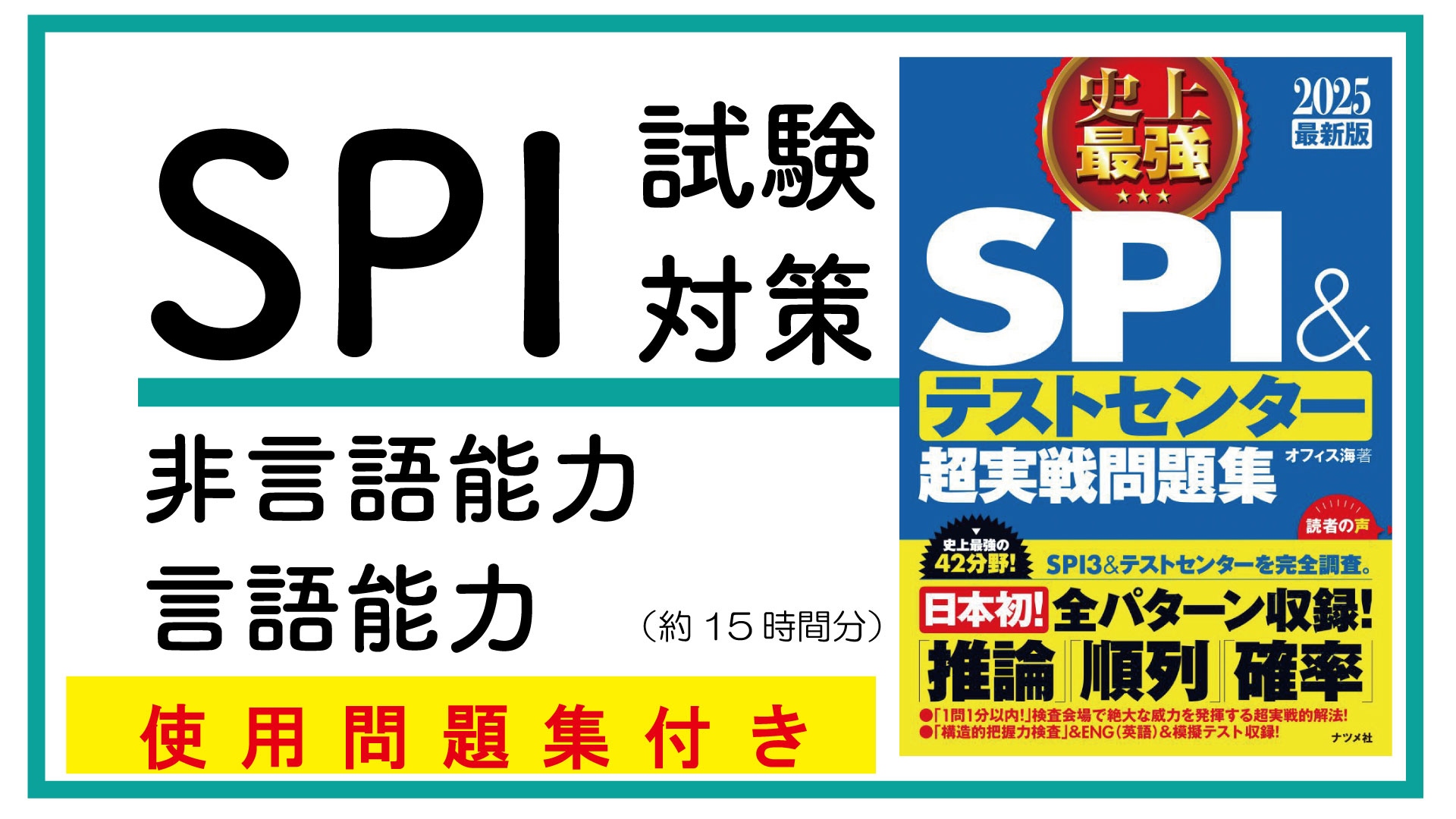 近年増えているSPI試験対策(非言語能力&言語能力)です。非言語能力13.5時間分、言語能力約1.5時間分です。
