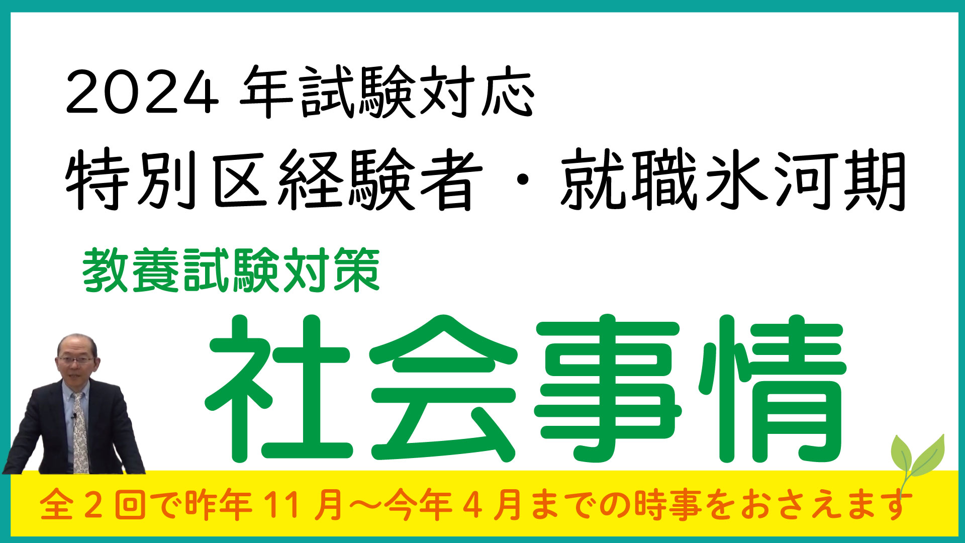 特別区経験者、就職氷河期試験対象の1次試験(9/1実施)対策「社会事情」(全2回・約220分間)の講義です。