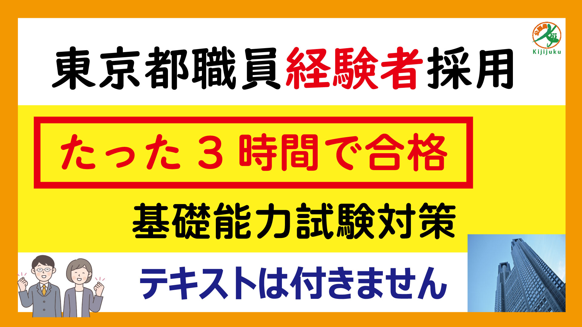 たった3時間で東京都経験者の基礎能力試験対策をマスターします。