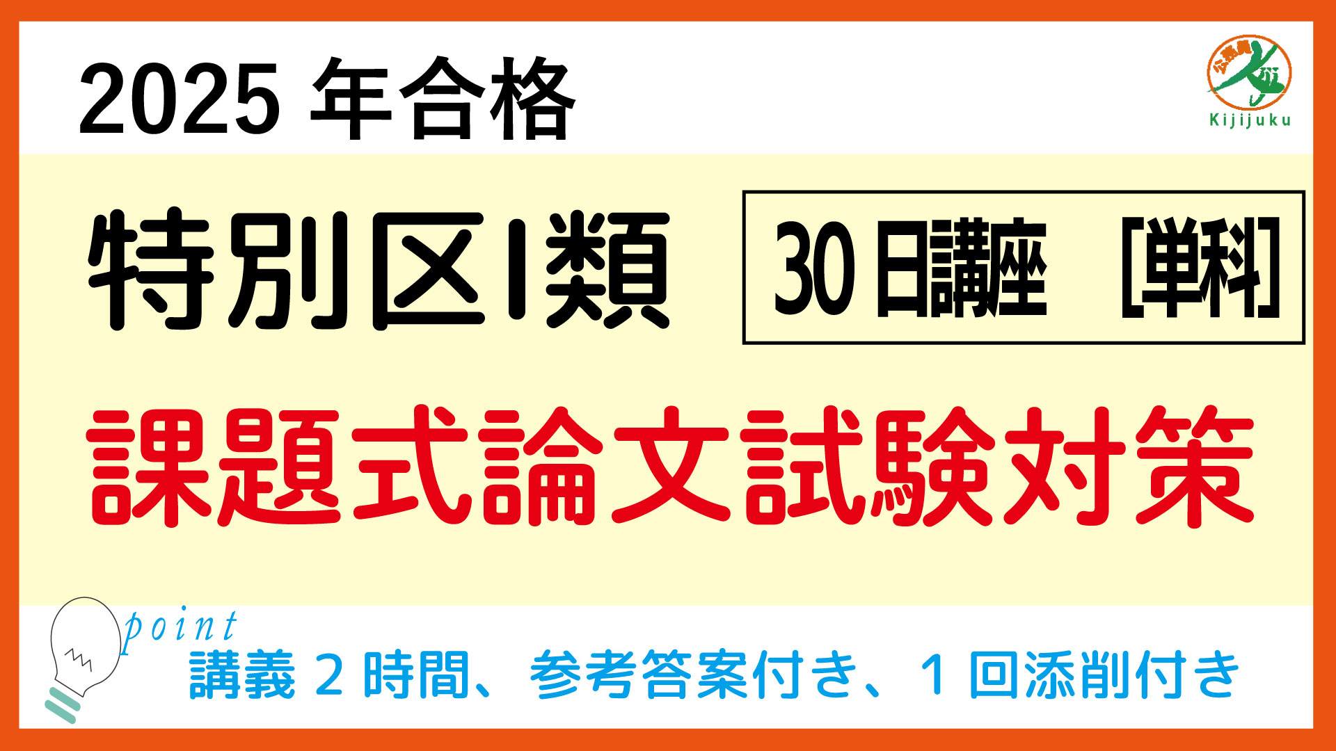 本講座は「2025年特別区Ⅰ類30日講座」に含まれている課題式論文対策の[単科受講]となります。