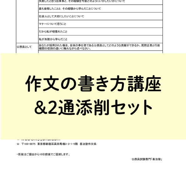 作文の書き方講座では形式面(作文の書き方ルールなど)と「社会人としての私」というテーマを題材にどういう風に組み立てていくかの内容面を分かりやすく講義しています。