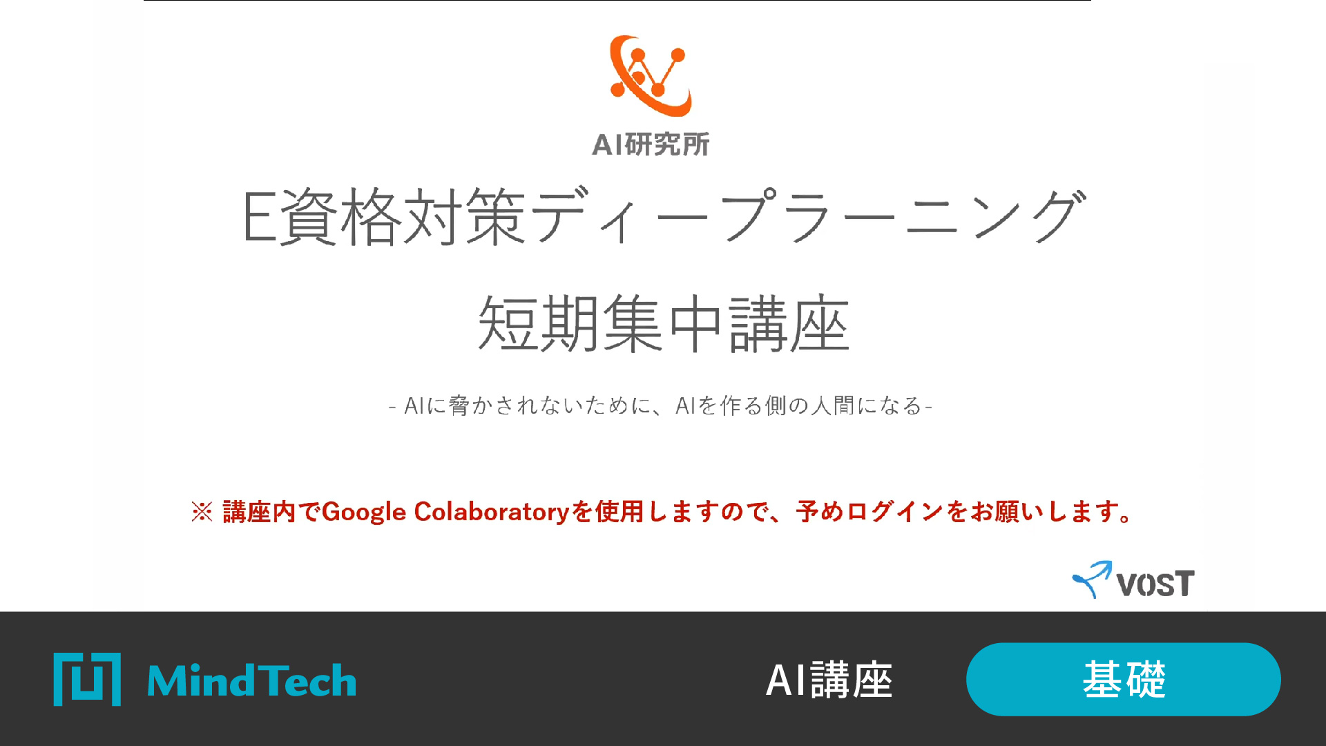 - レッスン E資格対策講座_事前学習 1.E資格対策講座-事前学習[ディープラーニング基礎]
