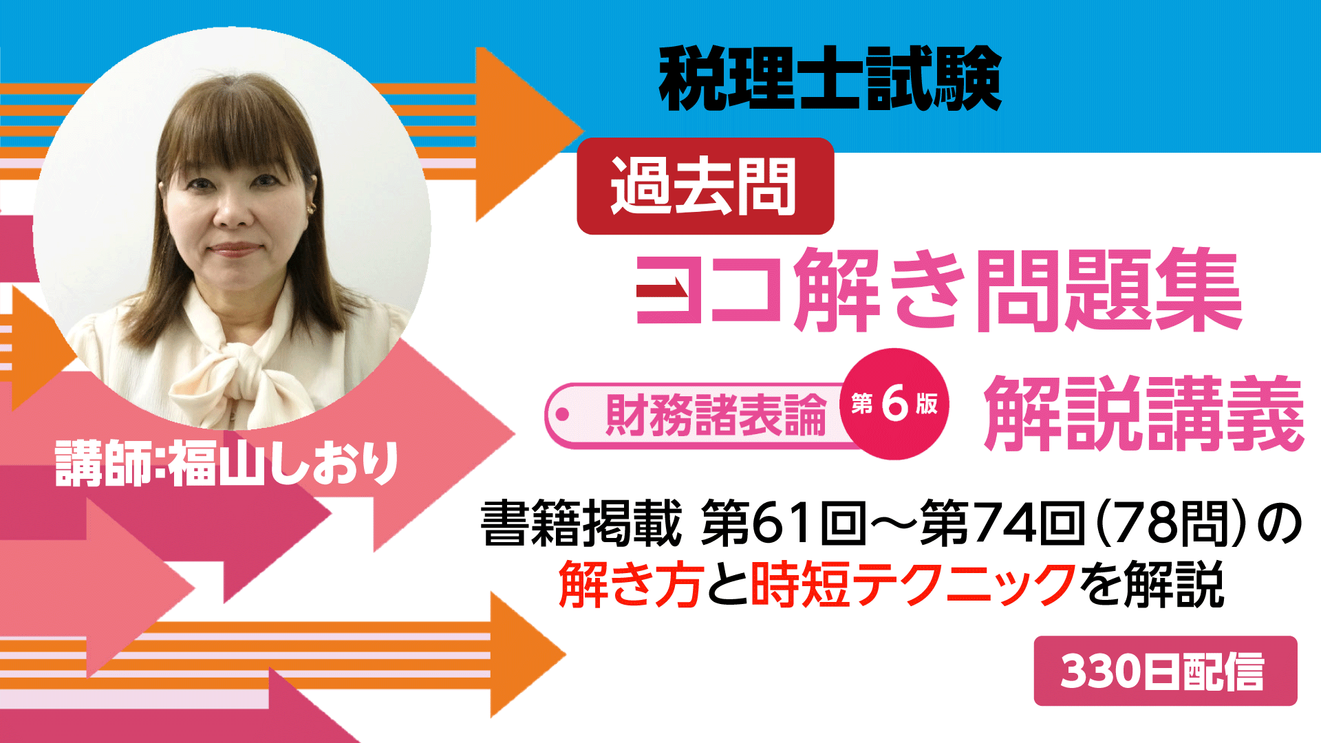 大好評の書籍「税理士過去問ヨコ解き問題集(財務諸表論 第6版)」全問の効率的な解き方を書画カメラで収録した実践講義です。