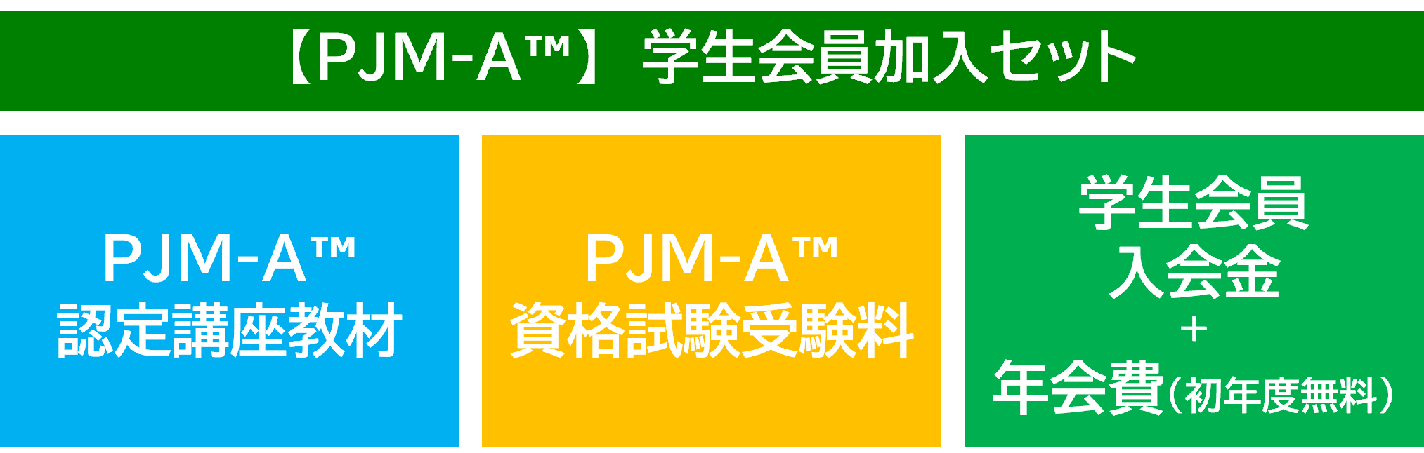※こちらのカートは、学生会員へのご入会と、PJM-A™教材と受験料をご希望の方用です。会員に入会しないでご利用になる方は「【一般用】NPMO認定PJM-A™:教材+受験料」(https://tlp.edulio.com/npmo/cart/detail/1249)をご購入ください。
