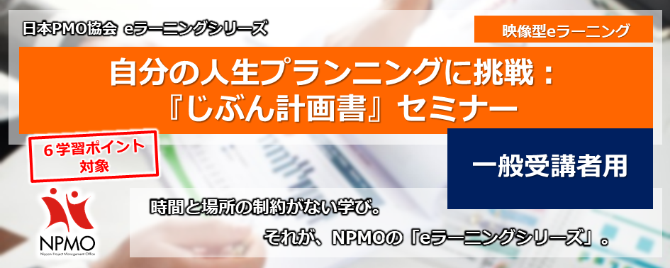 - NPMOオンラインセミナー:自分の人生プランニングに挑戦/「じぶん計画書」セミナー NPMOオンラインセミナー:自分の人生プランニングに挑戦/「じぶん計画書」セミナー 【映像コンテンツ】自分の人生プランニングに挑戦:「じぶん計画書」セミナー