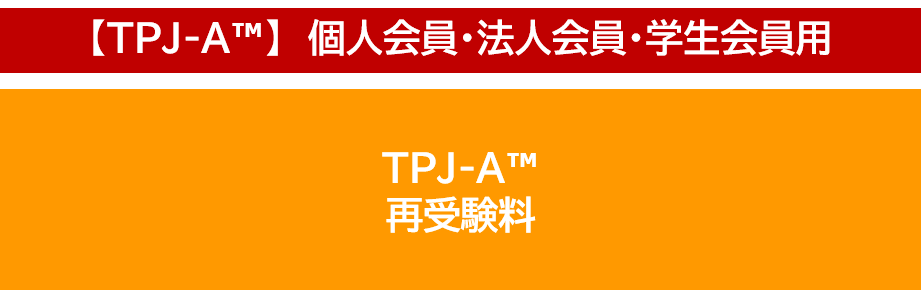 ●個人・学生・法人会員の方で指定のNPMO認定教材を学習し、修了後、TPJ-A™の再受験をお申込される方はこちらから受験料をお支払いいただき、お申込手続き完了から6か月以内に受験を行ってください。