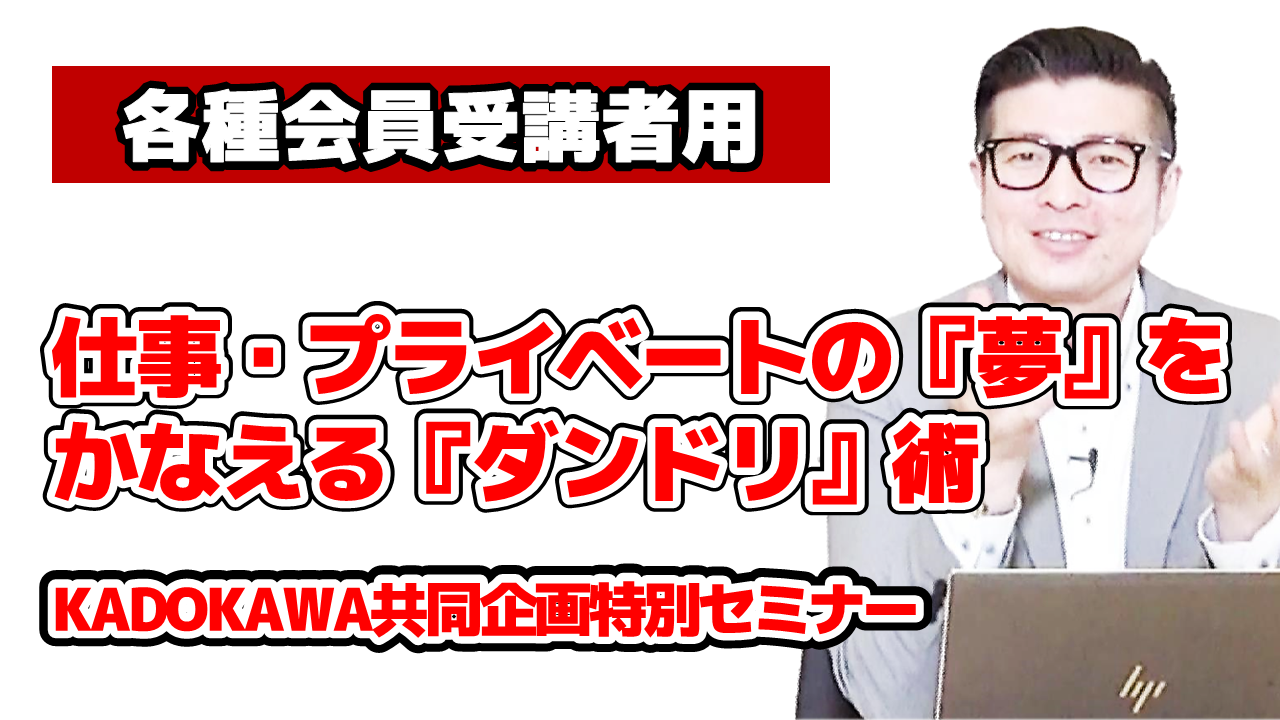 - NPMOオンラインセミナー(仕事・プライベートの「夢」をかなえる「ダンドリ」術)(KADOKAWA社共同企画) 映像講義 映像講義3