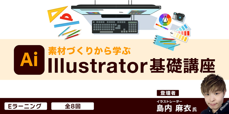 これからIllustratorを学びたい方、Illustratorの基礎力を高めたい方 を対象に、Webサイトで使用する素材制作に必要な Illustratorの使い方を学べるEラーニングです。