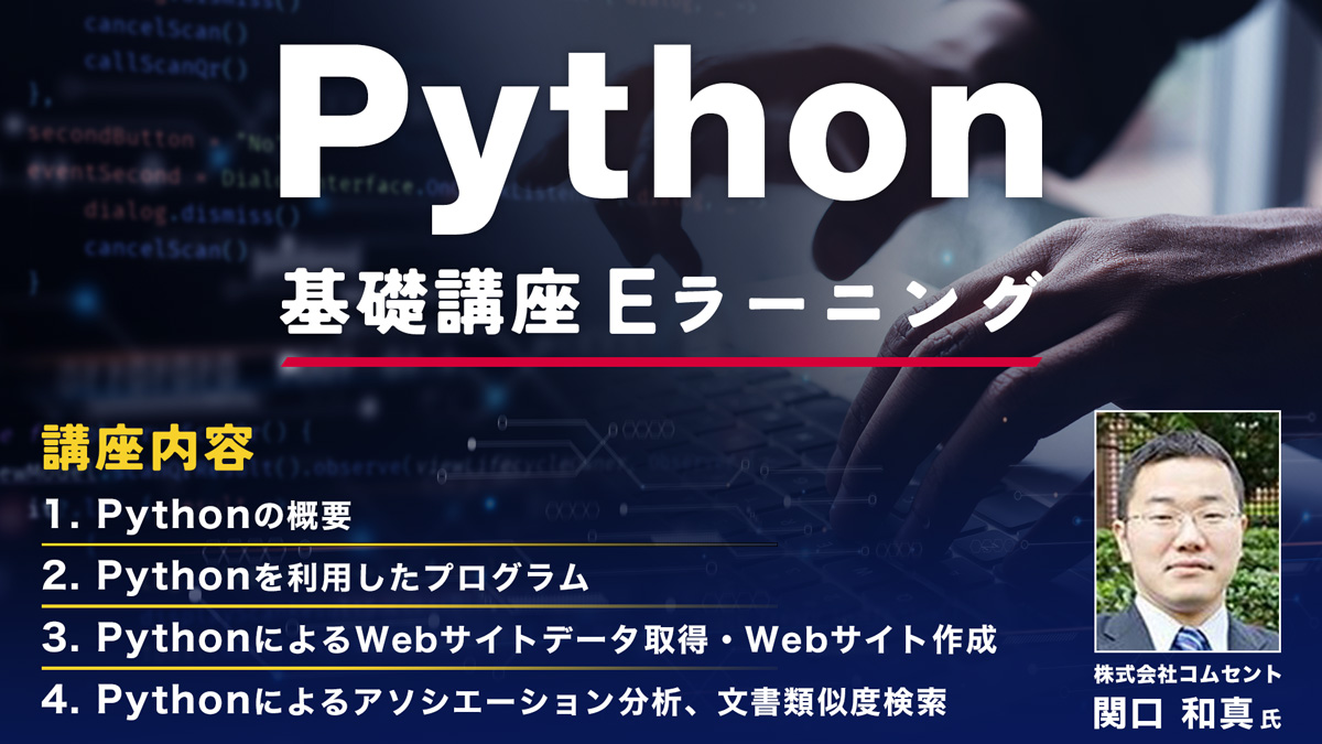 Pythonの概要からPythonによるWebサイトデータ取得・Webサイト作成、アソシエーション分析、文書類似度検索など、実習データを使いながら学ぶ内容となっています。