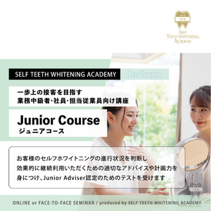 【Junior Adviserコース目標】 ◆お客様に対して適切なアドバイスをし得る、歯とホワイトニングに関する基本的知識を持つ◆セルフホワイトニングの進行状況を判断し、効果的にホワイトニングを継続するための計画を立てるアドバイスが出来る